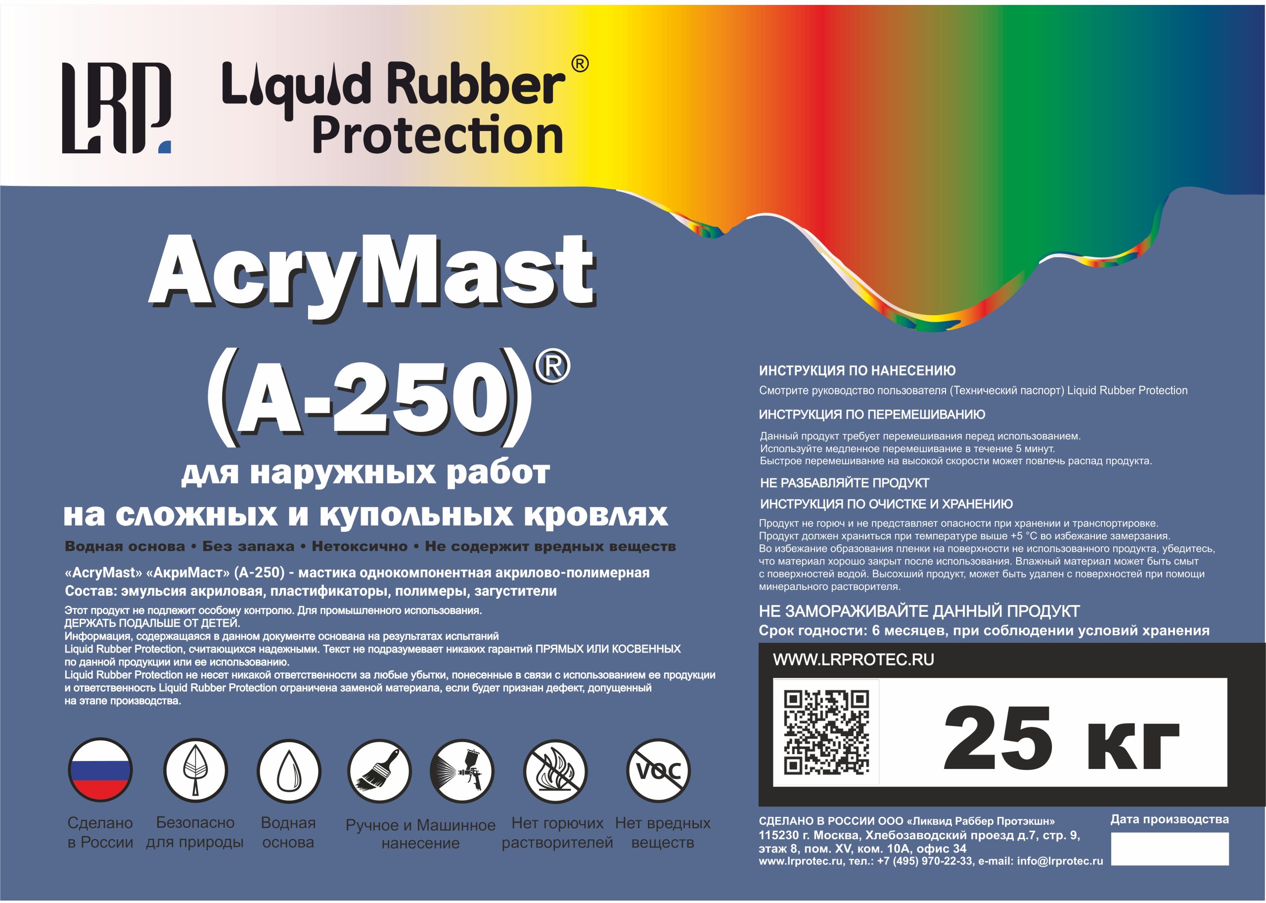 «AcryMast» «АкриМаст» (A-250) — для наружных работ на сложных и купольных кровлях, мастика однокомпонентная акрилово-полимерная.