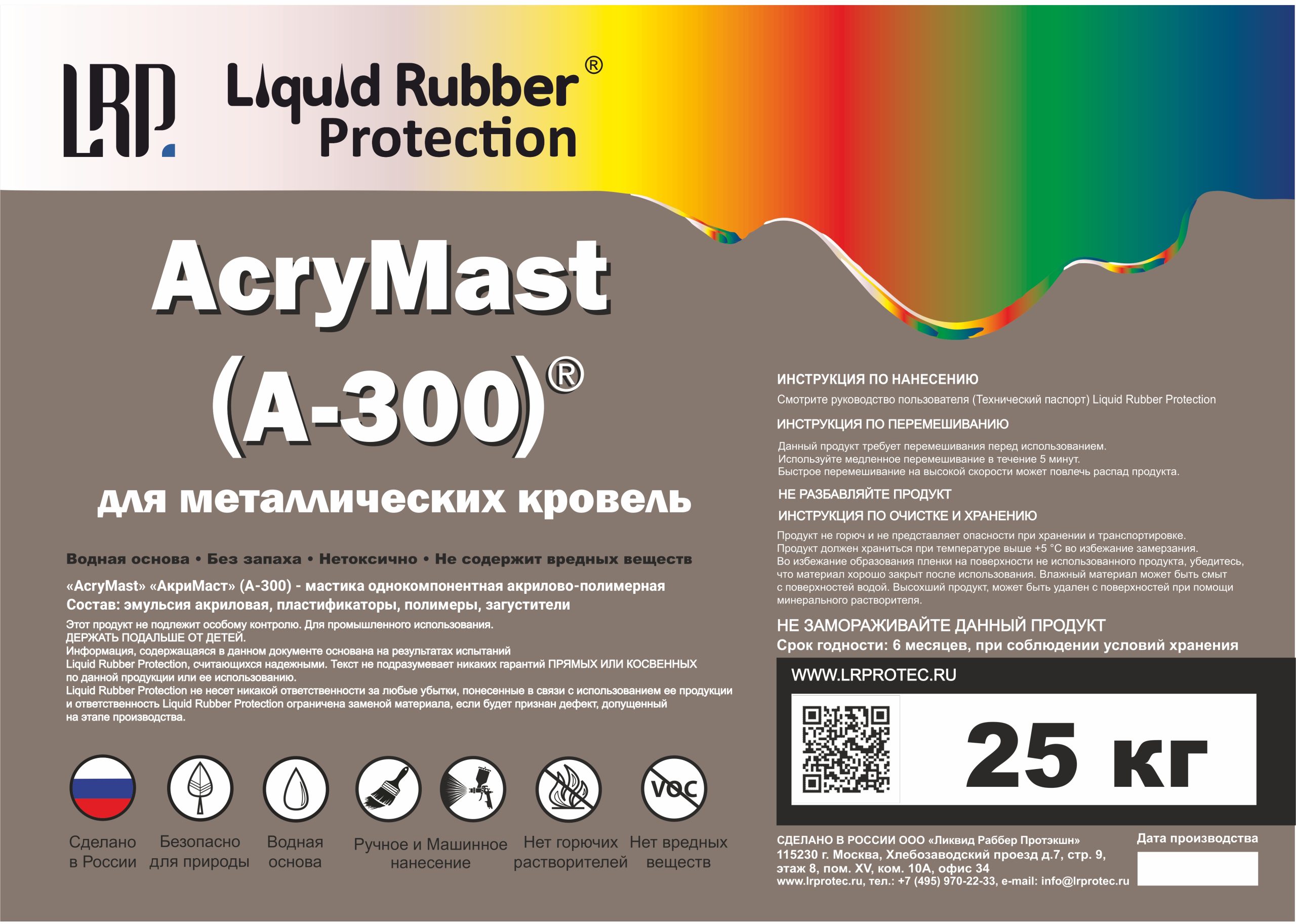 «AcryMast» «АкриМаст» (A-300) — для наружных работ на металлических кровлях, мастика однокомпонентная акрилово-полимерная.